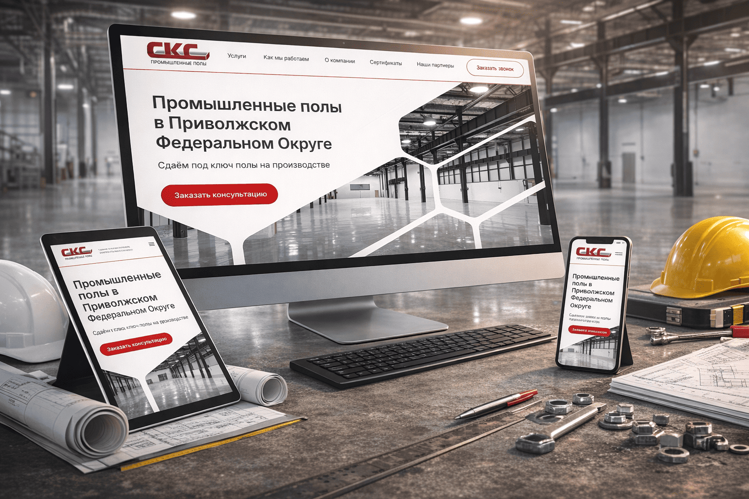 Перед посетиетелем портала Sks-prompol.ru раскрывается пространство без суеты и шума: ровный свет ложится на зеркальную поверхность пола, металлический каркас уходит в глубину цеха, масштаб читается без пояснений. Визуальная пауза формирует ощущение контроля и предсказуемости — качества, за которые ценят лучшие сайты для строительных компаний, работающие с промышленными и инфраструктурными заказами. Дизайн сайта и его продвижение в поиске — зона ответственности РОСТСАЙТ.
